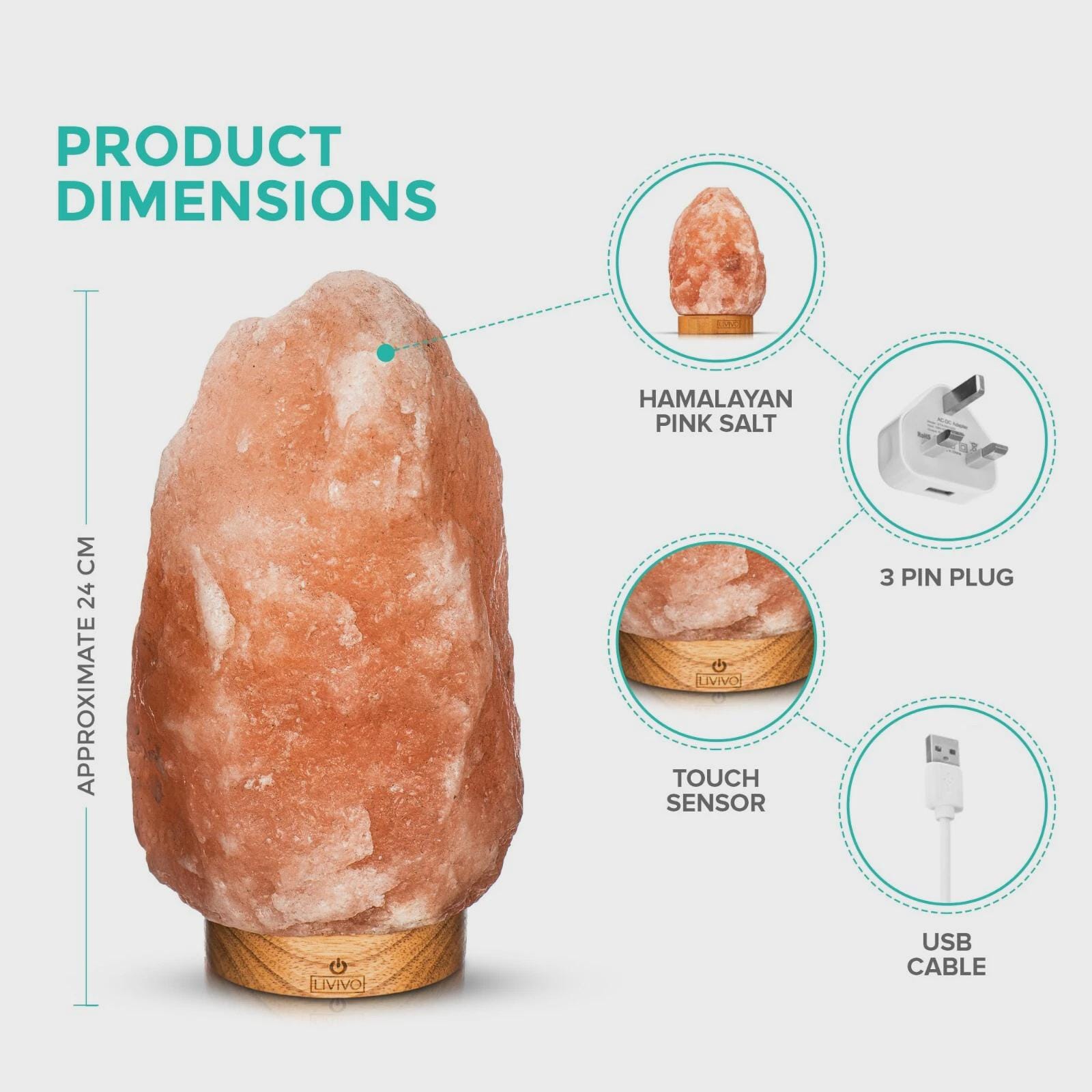 Please note that due to the nature of this product, no two lights will be exactly alike and will vary in size, weight, shape and colour. This is not a problem with the product and is a result of the natural formation of the Crystal Rock Salt. DIMENSIONS - L10cm x W10cm x H20cm / L4" x W4" x H8" (Estimate - Size & Shape Vary) Pack Includes 1 x Rock Salt Lamp and 1 x UK 3 Pin Plug and Cable Bulb is included Natural Himalayan Pink Crystal Rock Salt Electric Plug-in Lamp Create a Relaxing Warm Atmosphere In Any Room Natural Air Ioniser and Purifier Improves your Health and Wellbeing Every Light is Unique in Size, Shape and Colour DIMENSIONS - L10cm x W10cm x H20cm / L4" x W4" x H8" (approx.)