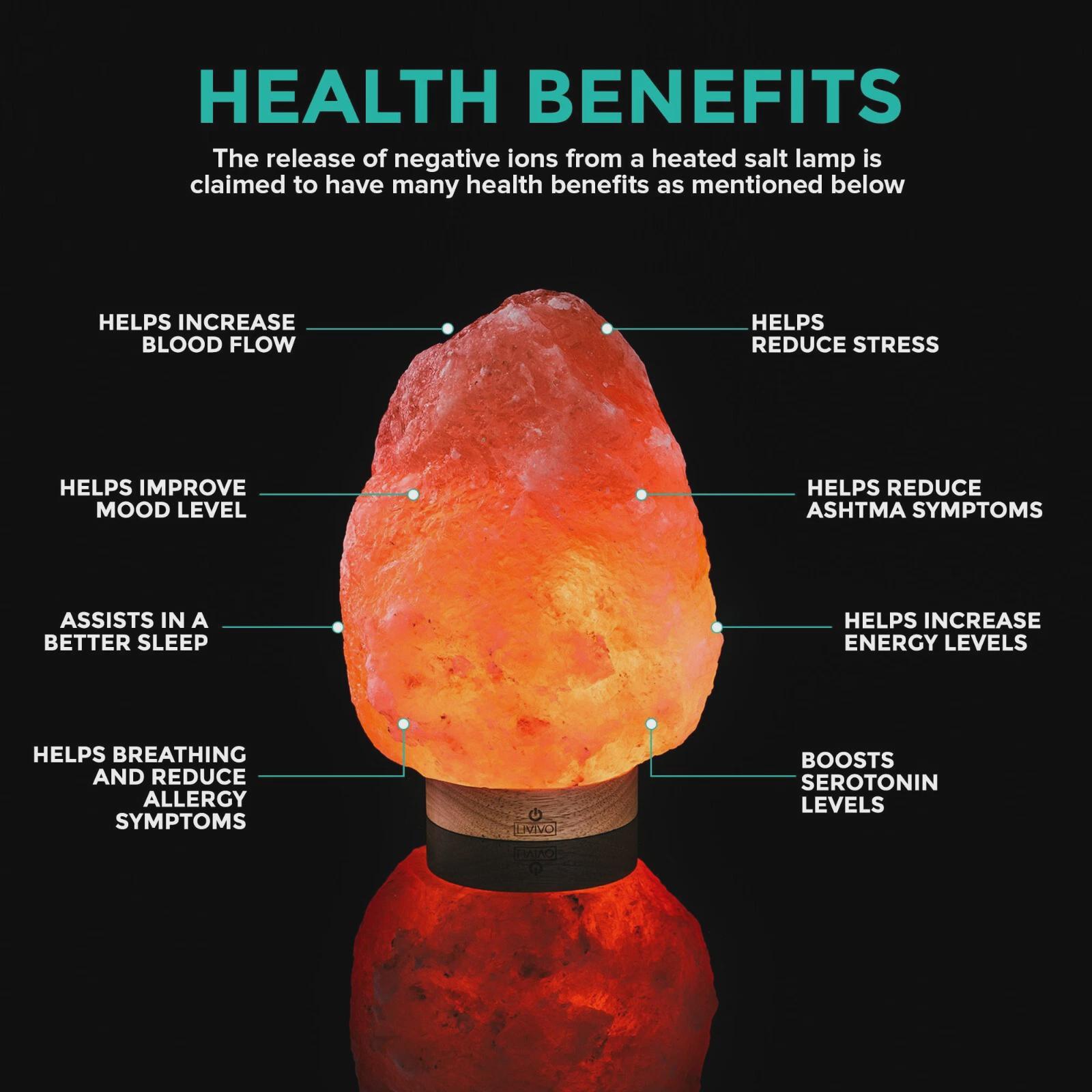 The air we breathe consists of ions (atoms or groups of atoms that carry either a positive or a negative electrical charge. Computers TV sets, air conditioners, tobacco smoke and many other by-products of modern living produce positively ionised air, which is harmful to our health. Negatively ionised air is generated by environments such as mountains, the seaside and waterfalls. and by mechanical means such as thunderstorm, gentle heat and Salt Crystal Lamps. Salt Lamps - Lights produce both gentle heat and negatively-charged ions. They make it easy for you to bring the benefits of famous health spas into your own home! The most common benefits are reductions in rheumatism, allergies, respiratory ailments, sleeplessness, migraine, high blood pressure, physical and psychological disorders, mild depression etc. In addition to the proven benefits of negative ionisation, many people also experience a reduction in stress and anxiety due to the gentle, soothing colours