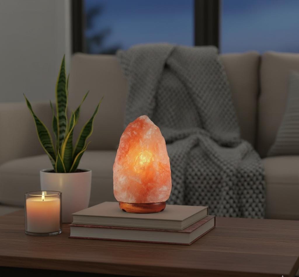 Real Himalayan Salt Lamp – Raw Pink Crystal Rock for Natural Healing & Soothing Glow