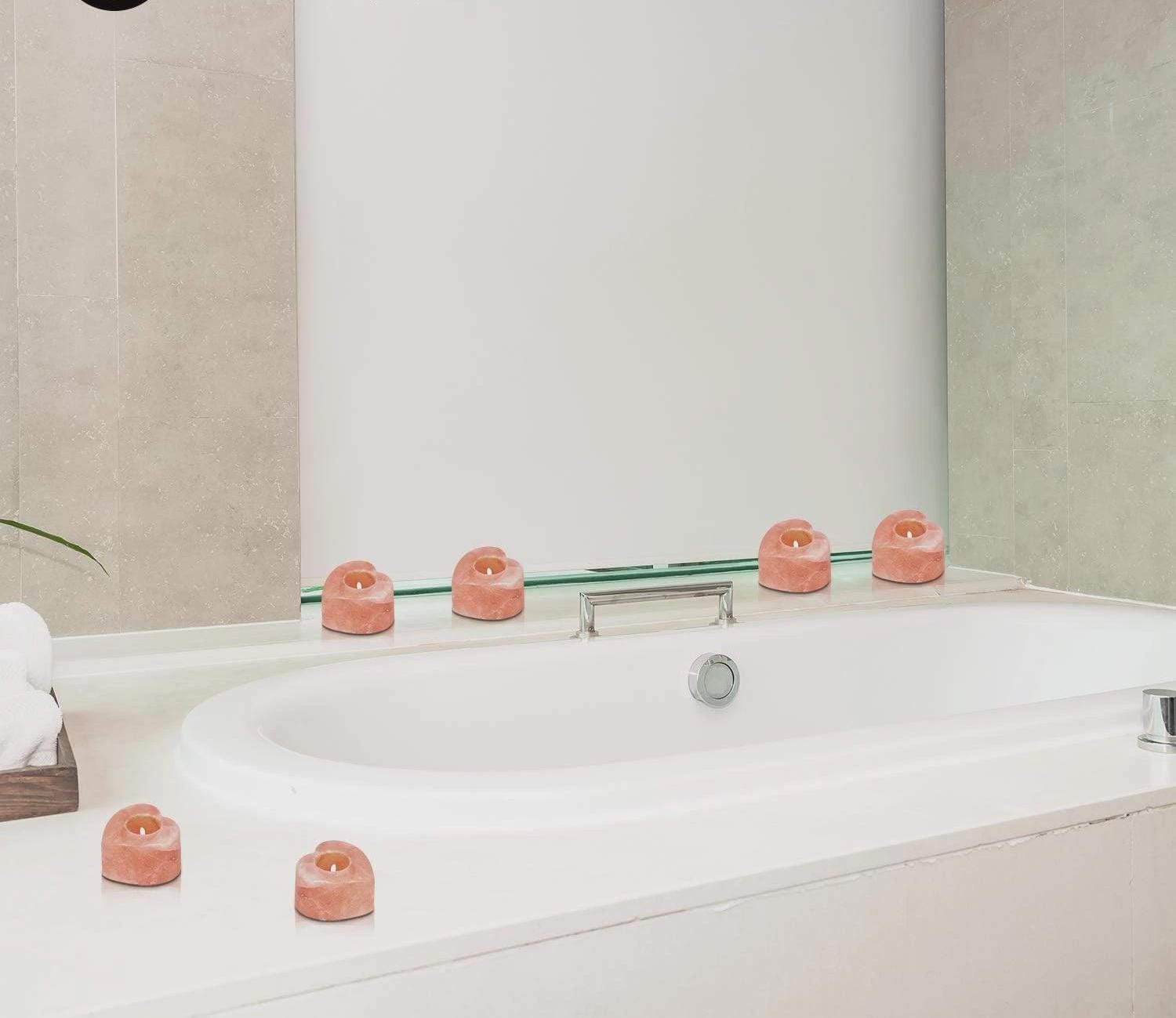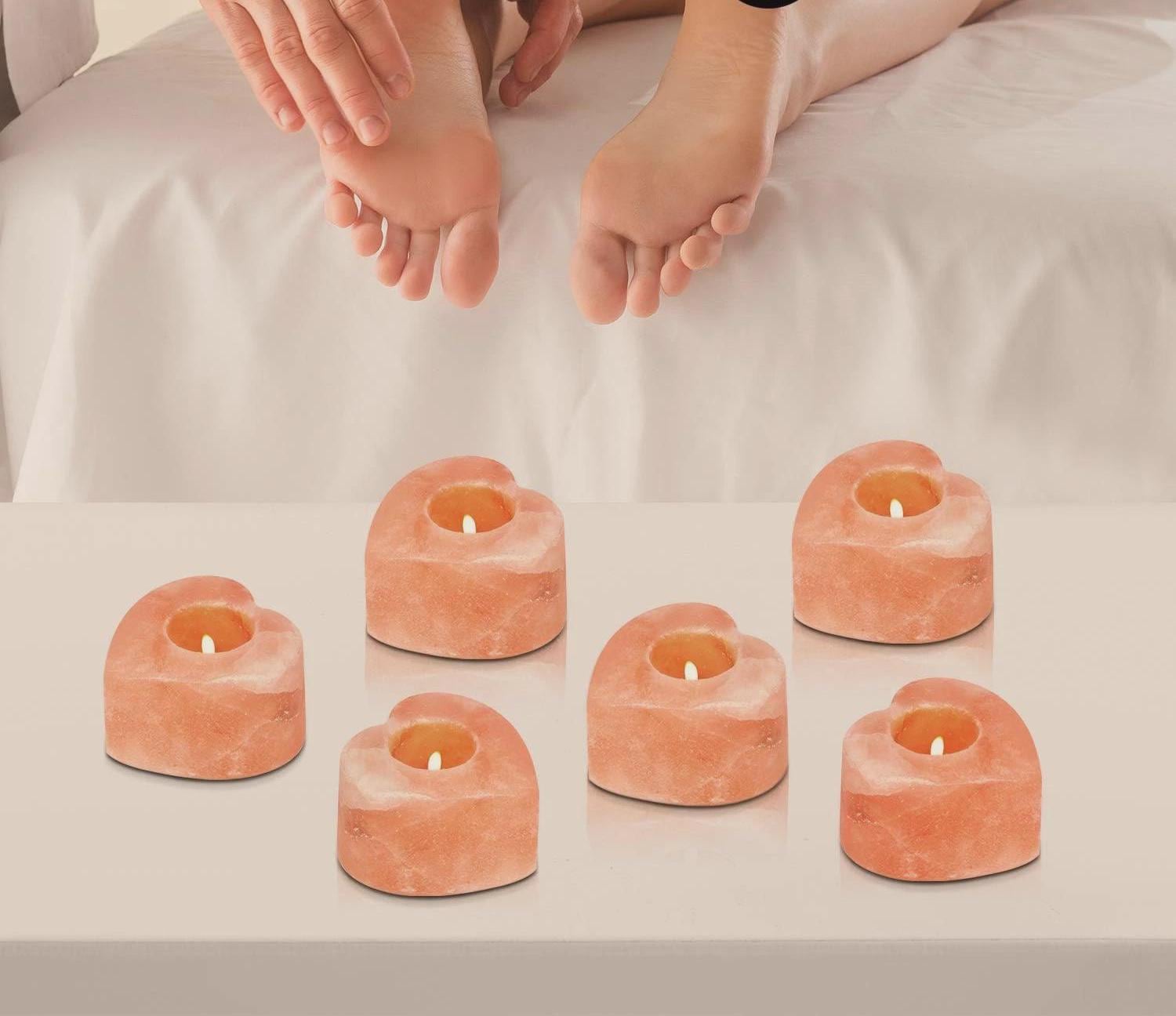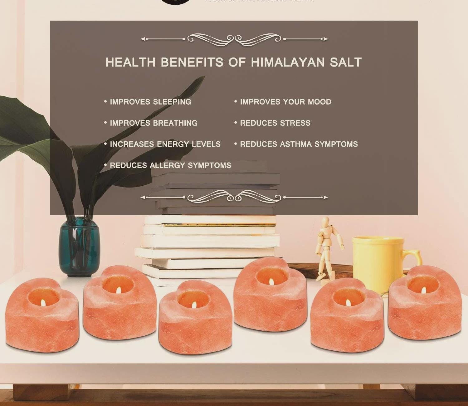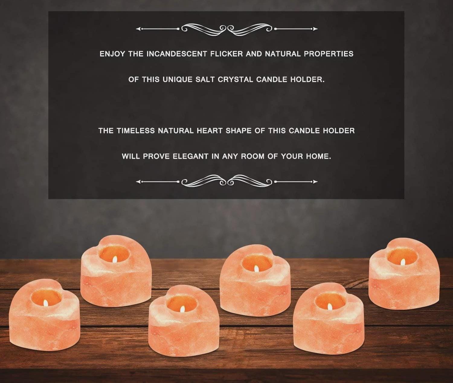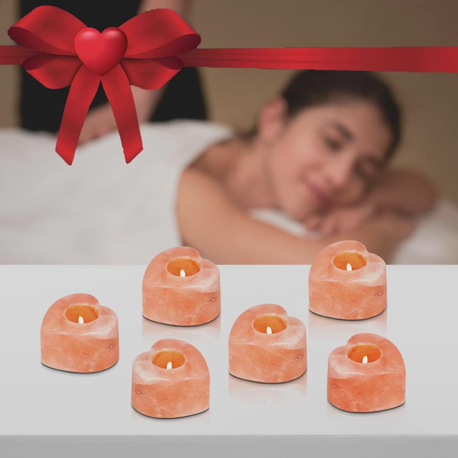 6-Pack Pure Himalayan Salt Candle Holders | Heart-Shaped Tea Light Set | Creates a Warm, Romantic Glow