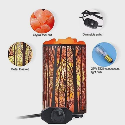 UNIQUE FOREST DESIGN BASKET HIMALAYAN SALT LAMP: When you are ready to go to bed, turn on the salt lamp and it will glow like a flame. You will see a forest shadow on the wall, just like breathing in nature. Premium quality of this forest basket we made it by anti-rust material, long service time.