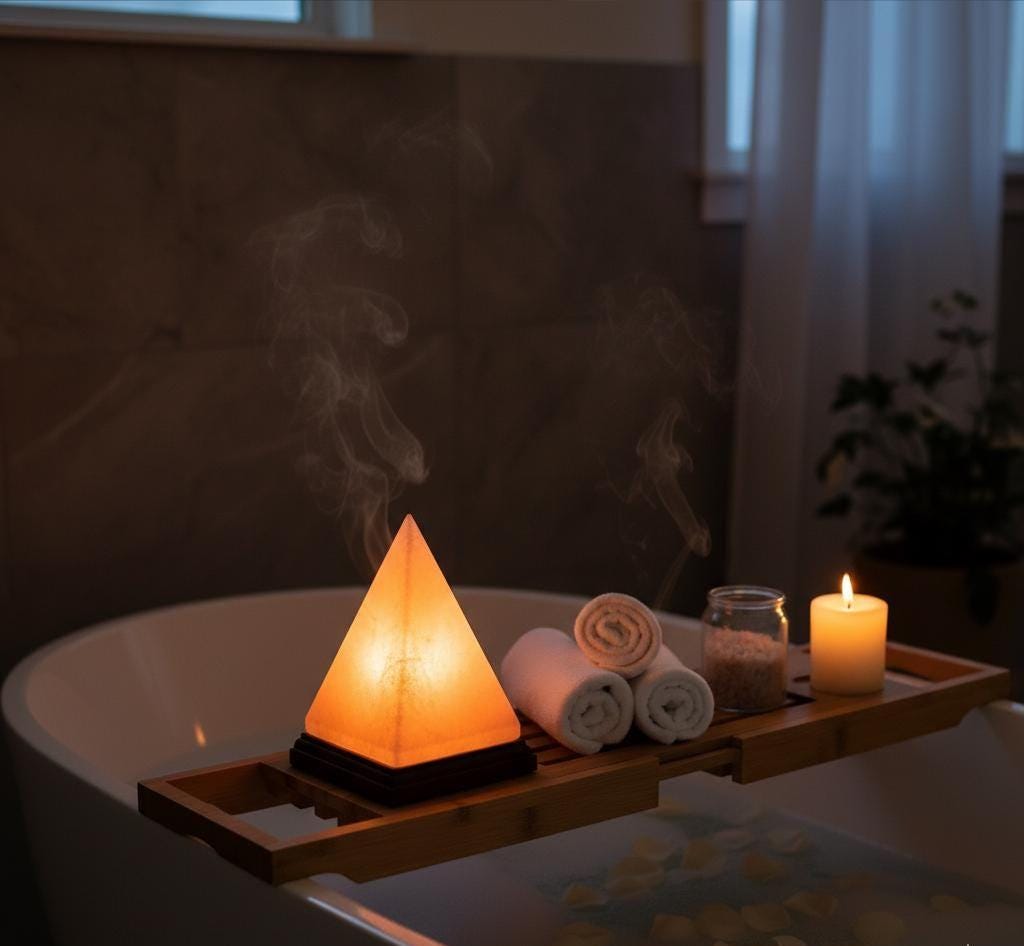 Experience the serene beauty of the Himalayas right in your home. This stunning, handcrafted pyramid lamp casts a mesmerizing, amber glow that transforms any room into a sanctuary of calm. The unique shape and warm light make it an extraordinary piece of decor, helping you to create a peaceful and inviting atmosphere wherever you need it most.